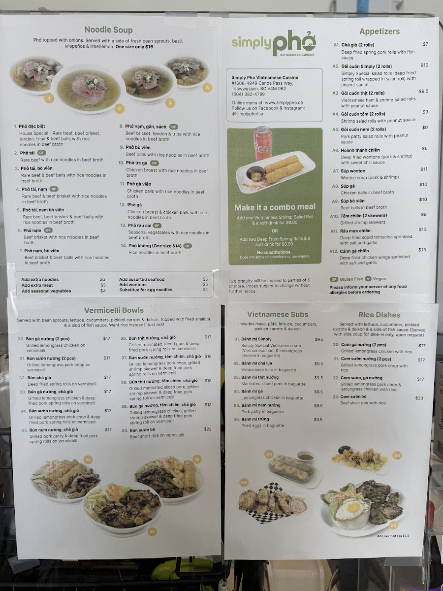 Welcome to Simply Pho Family Owned Vietnamese Cuisine, a delightful gem located in Tsawwassen, BC. This family-run restaurant specializes in traditional Vietnamese dishes, particularly its renowned pho, which has garnered rave reviews from patrons. The menu features perfectly balanced bowls of pho, expertly crafted with a satisfying meat-to-noodle ratio that leaves guests craving more.