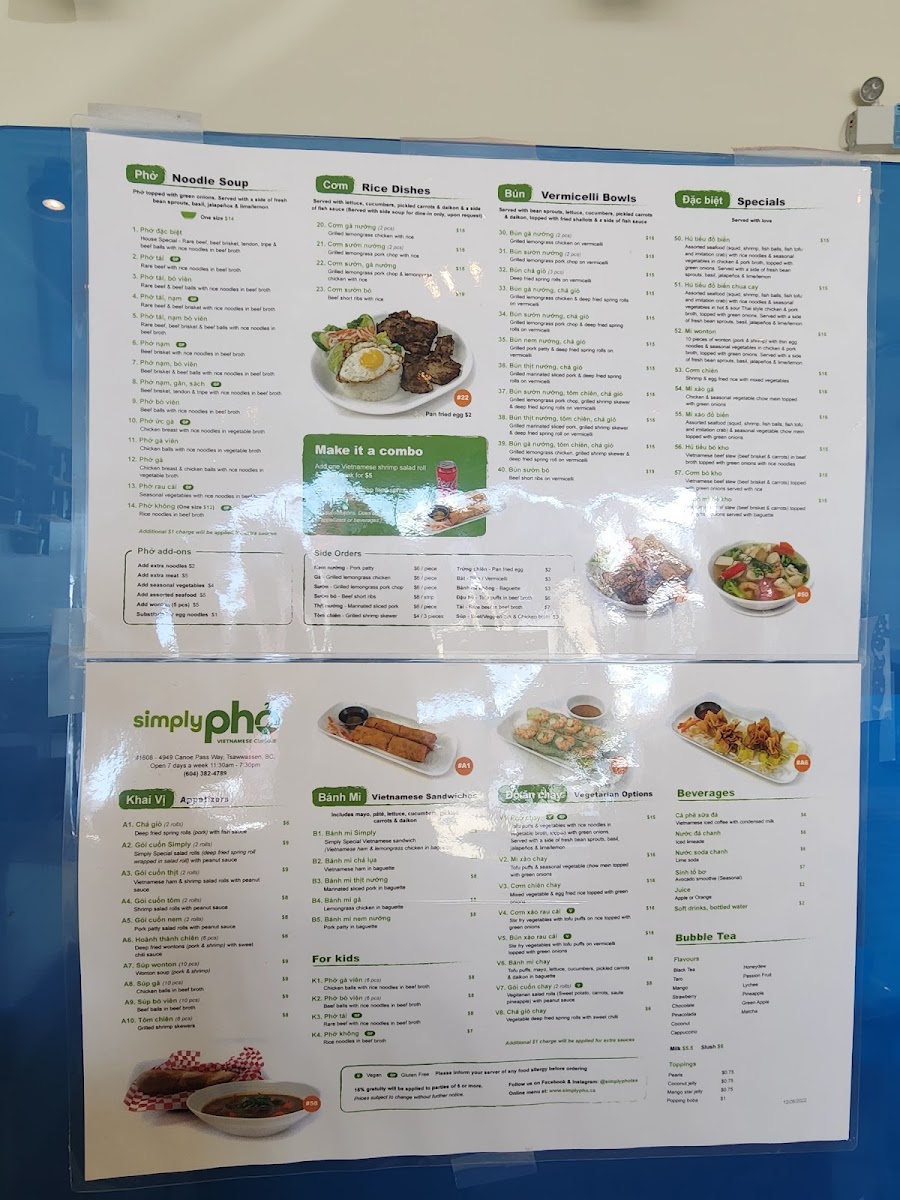 Simply Pho Family Owned Vietnamese Cuisine Menu